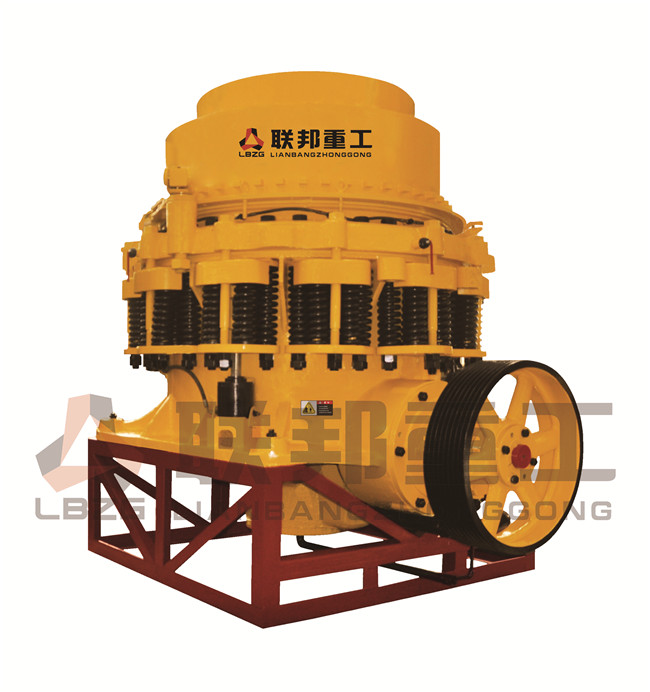 Cone crusher consist of frame, transmission device, hollow eccentric shaft, bowl-shaped bearing, crushing cone, springs and hydraulic pressure station for adjusting discharge opening. During operation, the motor drives the eccentric shaft shell to turn around through a horizontal axle and a pair of bevel gear. The axle of crushing cone swings with the force of eccentric shaft shell so that the surface of the crushing wall is close to the roll mortar wall from time to time. In this way, the ores and rocks will be pressed and crooked and crushed.