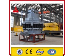 When the crusher working, through the horizontal axis of the motor and a pair of bevel gear drive the eccentric shaft sleeve, broken cone axis under the forced motion of eccentric shaft sleeve do rotary pendulum motion, makes the broken wall surface and sometimes near and sometimes leave the surface of the rolling mortar wall, which make the ore crushing cavity continuously by extrusion and bending were broken.