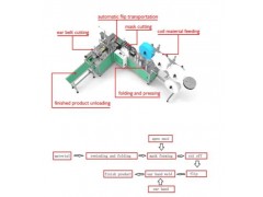 This machine produces non-woven face mask body and belt automatically from raw material to finished mask