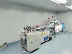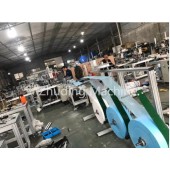 This machine produces non-woven face mask body and belt automatically from raw material to finished mask