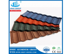 The product adopts high and new technology. It is a latest advanced roofing material that applies highly corrosion resistant Al-Zn alloy coated steel sheet as base plate, highly weatherproof acrylic resin as adhesive, and natural color sand as surface course. Owing to its attractiveness, light weight, great durability, and environmental protection, it has become a mainstream roofing material of the international market, and it is also being applied to high-end buildings in China.