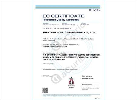 Certificate introduction Acurio founded in 2013, is one of the leading manufacturers specialized in providing Safe & Accurate & Reliable medical equipments. Our products include Compressor Nebulizer, Pulse Oximeter, Fetal Doppler and Blood Pressure Monitor. We have around 150 intelligent, self-driven and innovative people working on the R&D, Manufacturing, sales and service. Safe, Accurate and Reliable are the most important things to Acurio. We designed our products according to CE, FDA standard, and we manufacture all of them under the requirements of ISO13485 system. We love to learn and we are thrilled whenever customers share their experiences with us. Every feedback makes our product better. Above all, we are proud of our product knowledge and we are always willing to provide our support. Certificate image |