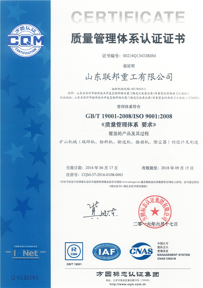 Certificate introduction Certification for all our stone crusher line machines, including vibrating feeder, stone crusher, vibrating screen, belt conveyor.