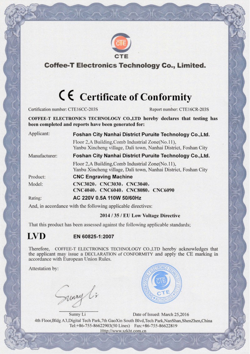 | Certification authority: | CTE | Issuing date : | 2016-03-25 |