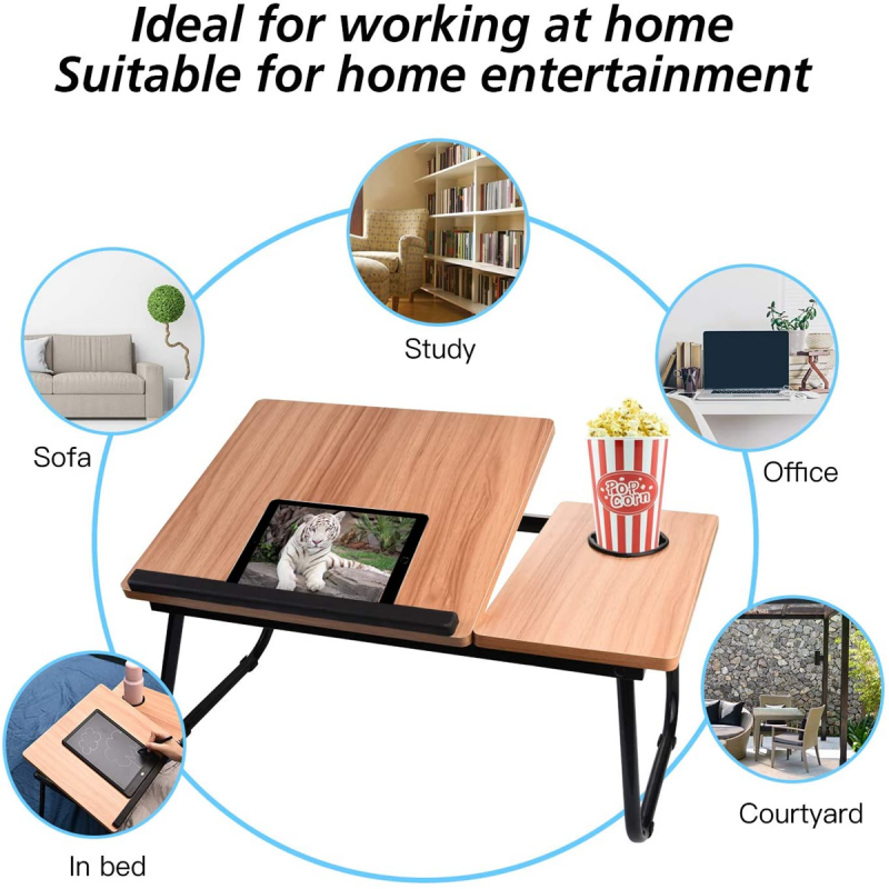 The laptop desk is made of durable eco-friendly MDF board and steel legs. It adds more convenience to your daily life. To release fatigue Work or play anywher, whether on the bed, the floor, or the sofa. Working, reading, writing, watching movie, playing games are all things that you can do on your folding laptop table. Folding laptop table can help make your digitally connected life more comfortable without taking up too much extra space.