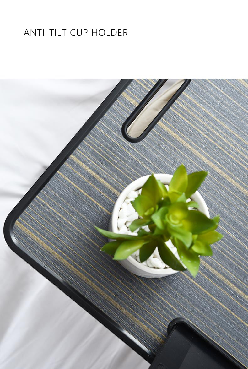 · No assembly required, it is ready to go right out of the box! This foldable laptop table for bed can be folded into two halves for storage and transportation.