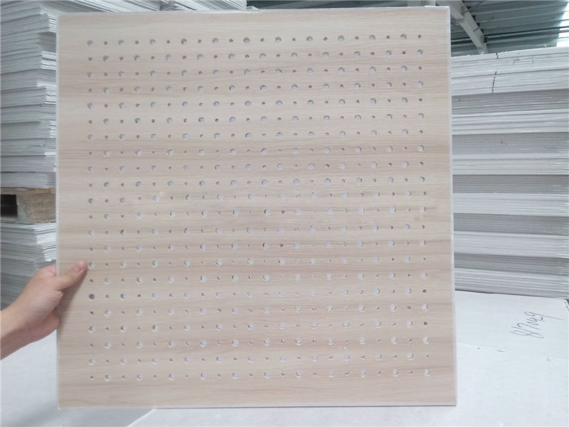 Perforated Acoustic Gypsum Ceiling Tiles with Wood Grain PVC Facing