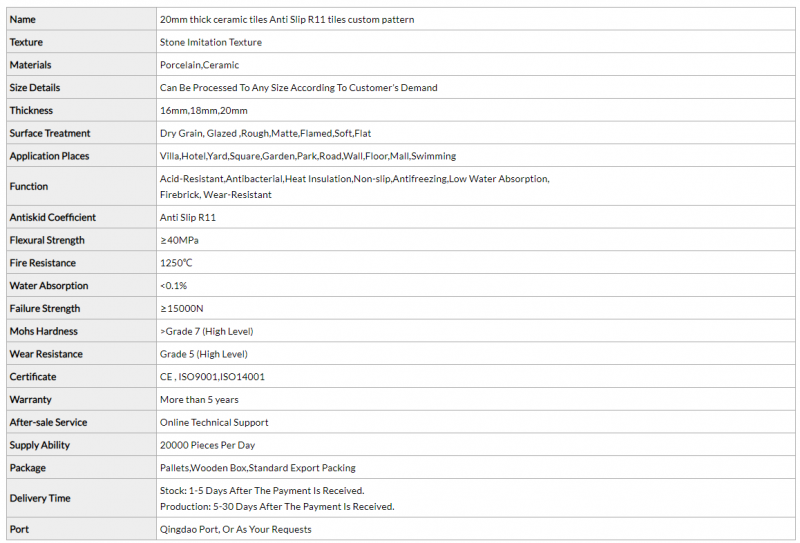 » 20mm Thick Ceramic Tiles Anti Slip R11 Tiles Custom Pattern