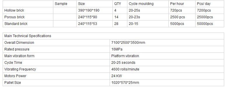 Hollow brick: 240*115*90mm 2520~3360PCS/h