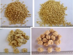 Our textured soy protein is made from high quality Non-GMO soybean,produced through peel,degrease,extraction,expanding,high-temperature&high-press,widely used in the processing of fast-frozen foods&meat products,also it is as a main stuff directly into all kinds of vegetarain foods and meat-imitate products etc...