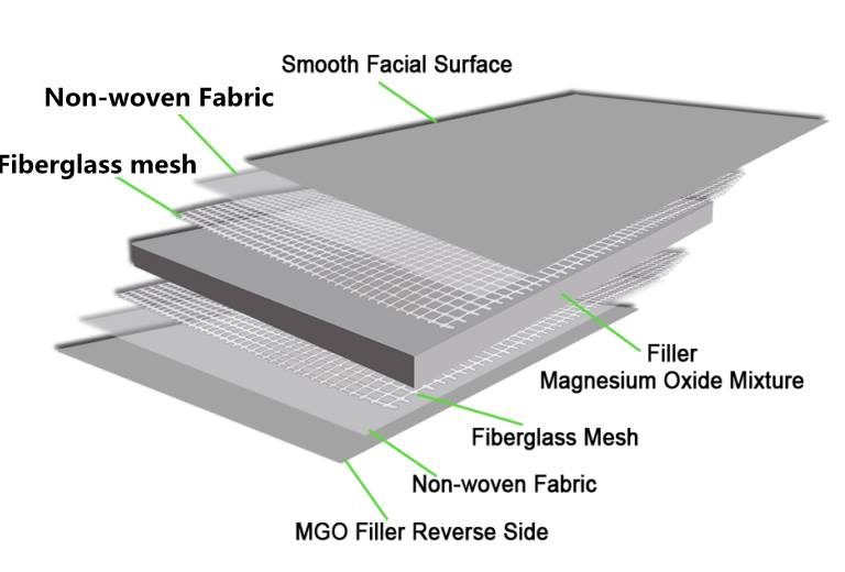 Magnesium Oxide Board is a technologically advanced building material that offers superior performance in every category when compared to traditional wood, gypsum and cement based products. Magnesium Oxide Board is virtually impervious to fire, water, insects; does not feed mold or mildew; is non-toxic, non- flammable and non-combustible; is durable, maintains it's dimensional stability - even when wet; and has exceptional bonding surface.