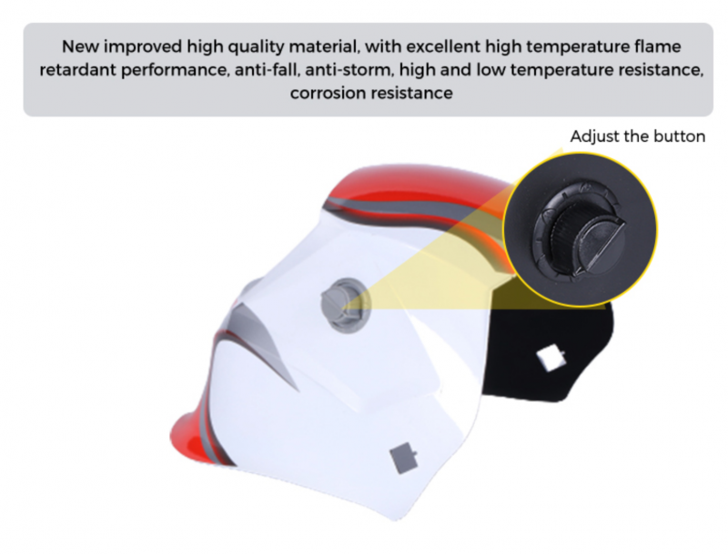 resistance, and can easily cope with various environments Internal knob The inside of the mask is designed with a sensitivity knob and an arc extension time button, which can adjust the flashing frequency of the self-lighting screen and the time for the screen to return to the bright state after welding. It is more convenient and faster to use! Control valve The product adjustment valve can adjust the distance between the screen and the face, which is highly practical Adjustment button The gear adjustment knob can easily adjust the tightness and adjust the comfortable tightness of the head according to the size of the head. Forehead sweat-absorbent sponge Thickened sweat-absorbent sponge to protect the forehead from tightness, non-slip and wear-resistant, comfortable to wear |