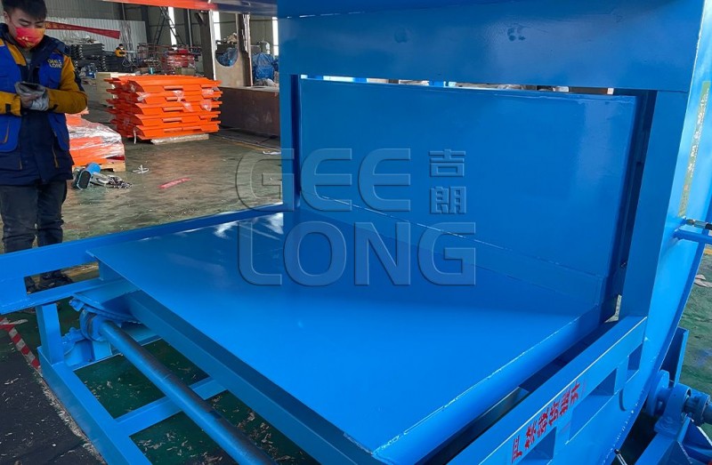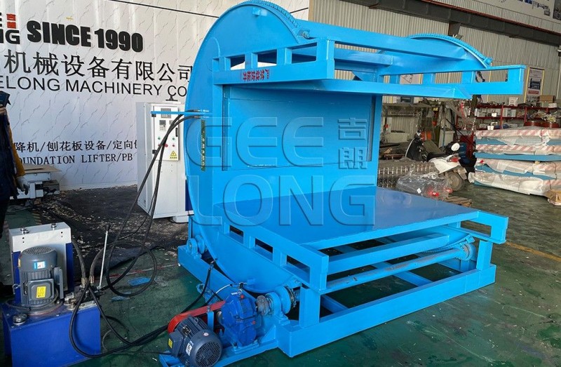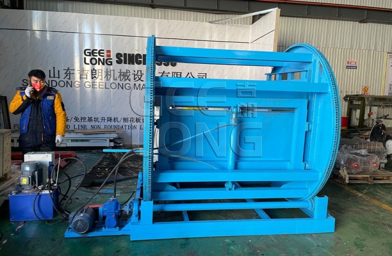 This board overturn machine, consist of two system, one system is hydraulic system, and another one is chain overturning system, hydraulic station’s function is used to fasten the plywood not drop during the 180°overturning.