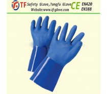 | Name | Gauntlet gloves / cotton Interlock liner blue PVC double dipped working gloves with sandy finished surface |
