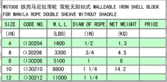 » WST008 MALLEABLE IRON SHELL BLOCK FOR MANILA ROPE