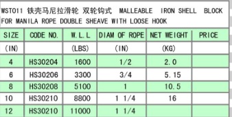 » WST011 MALLEABLE IRON SHELL BLOCK FOR MANILA ROPE