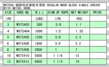 » WST054 REGULAR WOOD BLOCK SINGLE SHEAVE WITH SWIVEL HOOK