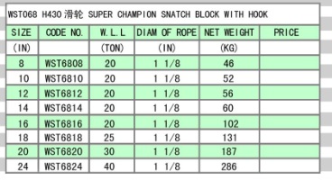 » WST068 SUPER CHAMPION SNATCH BLOCK WITH HOOK