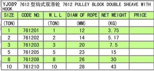 » WST089 PULLEY BLOCK DOUBLE SHEAVE WITH HOOK