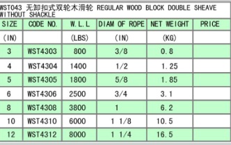 » WST043 REGULAR WOOD BLOCK DOBLE SHEAVE WITHOUT SHACKLE