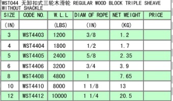 » WST044 REGULAR WOOD BLOCK TRIPLE SHEAVE