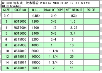 » 050 REGULAR WOOD BLOCK TRIPLE SHEAVE WITH SHACKLE