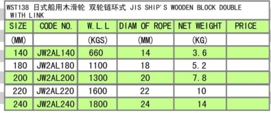 » WST138 JIS SHIP'S WOODEN BLOCK DOUBLE WITH LINK