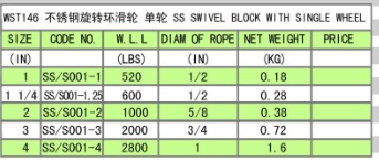 » WST146 SS SWIVEL BLOCK WITH SINGLE WHEEL