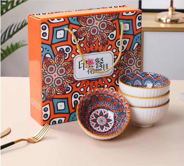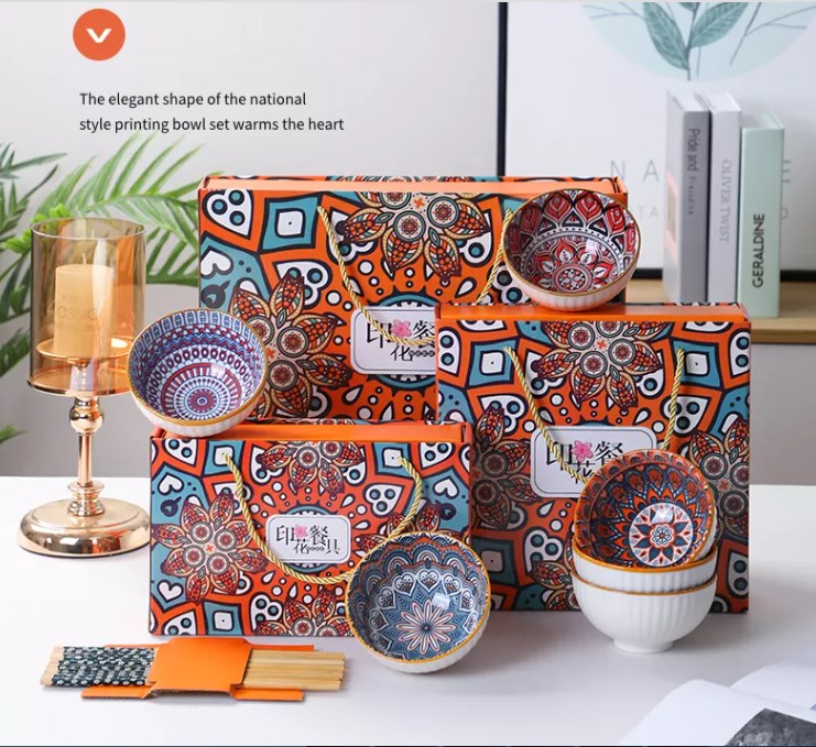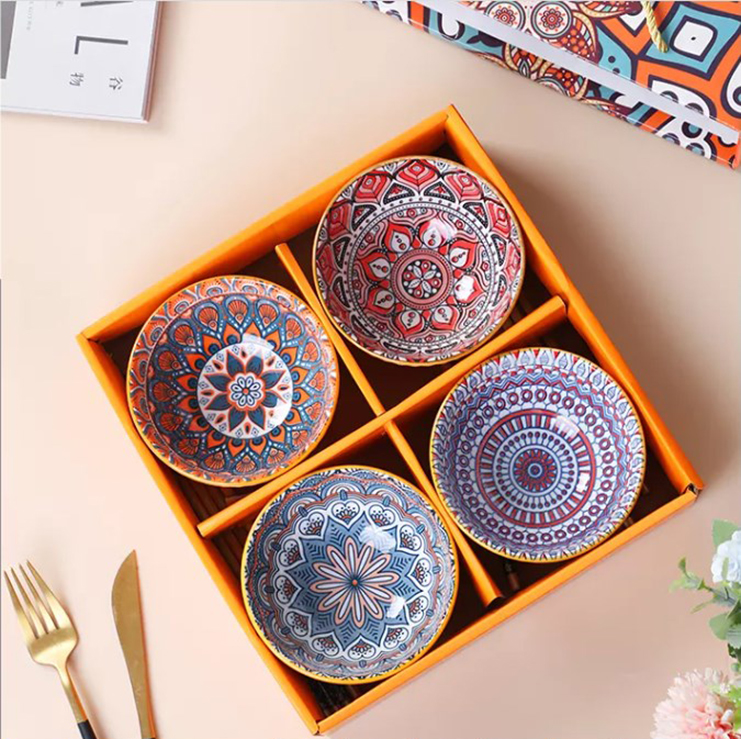 » Bohemian Ceramic Bowls Dinnerware Set With Gift Box