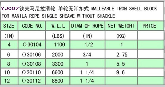 » YJ007 MALLEABLE IRON SHELL BLOCK FOR MANILA ROPE