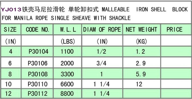 » YJ013 MALLEABLE IRON SHELL BLOCK FOR MANILA ROPE
