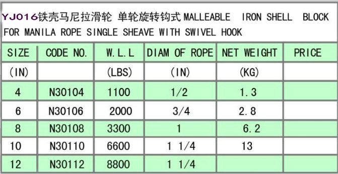 » YJ016 MALLEABLE IRON SHELL BLOCK FOR MANILA ROPE