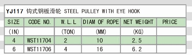 » YJ117 STEEL PULLEY WITH EYE HOOK