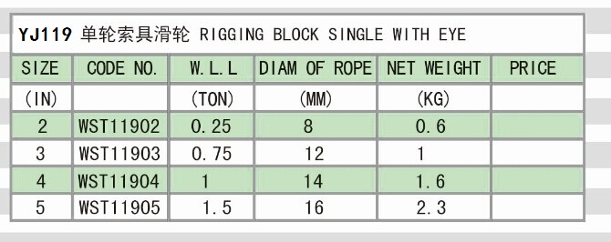 » YJ119 RIGGING BLOCK SINGLE WITH EYE
