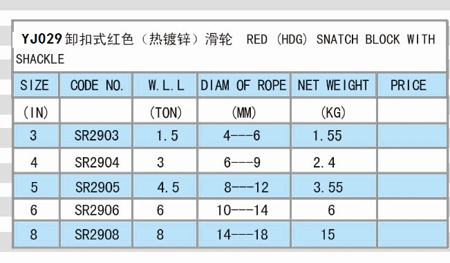 » YJ029 RED (HDG) SNATCH BLOCK WITH SHACKLE