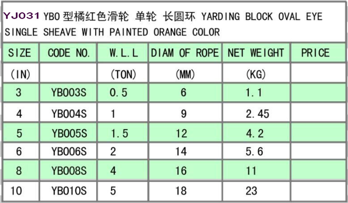 YJ031 YARDING BLOCK OVAL EYE SINGLE SHEAVE