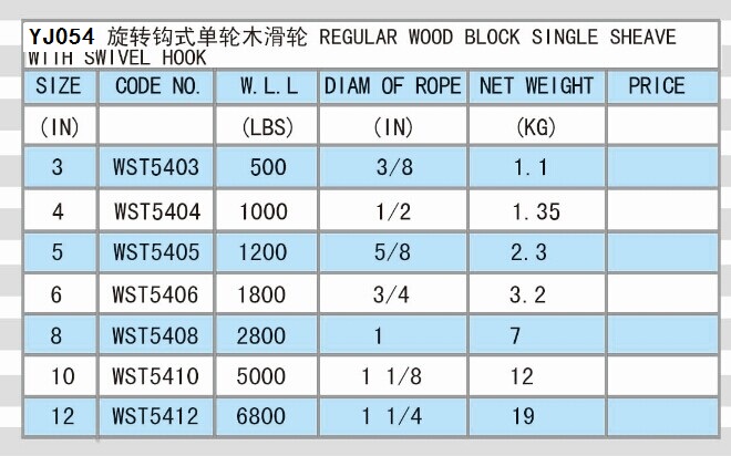 » YJ054 REDULAR WOOD BLOCK SINGLE SHEAVE WITH SWIVEL HOOK