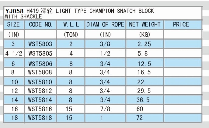 YJ058 LIGHT TYPE CHAMPION SNATCH BLOCK WITH SHACKLE
