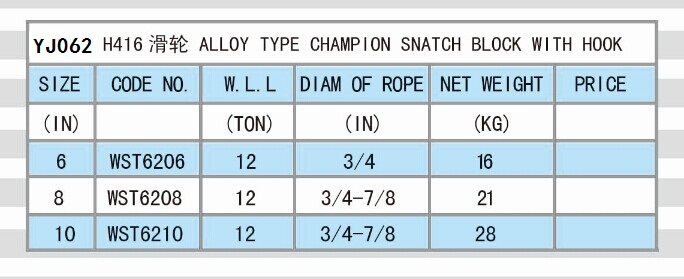 YJ062 ALLOY TYPE CHAMPION SNATCH BLOCK