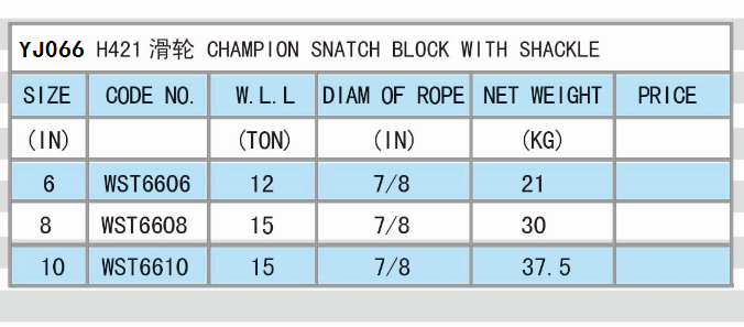 YJ066 CHAMPION SNATCH BLOCK WITH SHACKLE