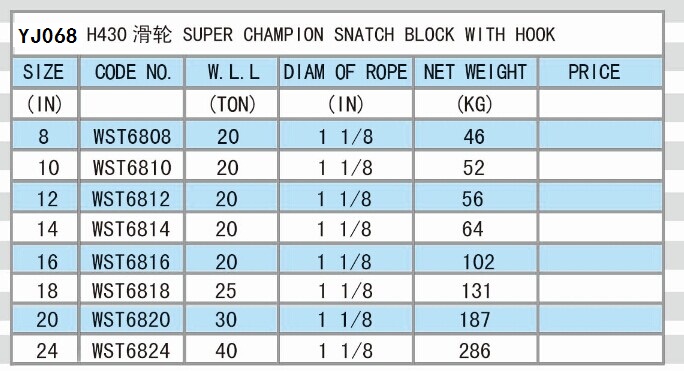 » YJ068 SUPER CHAMPION SNATCH BLOCK WITH HOOK