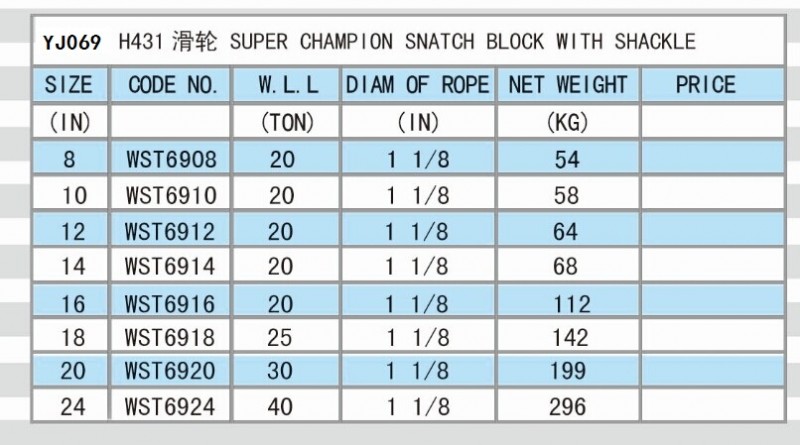 YJ069 SUPER CHAMPION SNATCH BLOCK WITH SHACKLE