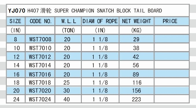 » YJ070 SUPER CHAMPION SNATCH BLOCK TAIL BOARD