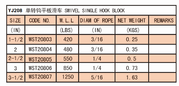 YJ208 SWIVEL SINGLE HOOK BLOCK