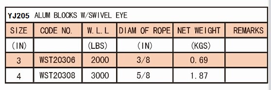 » YJ205 ALUM BLOCKS W/SWIVEL EYE