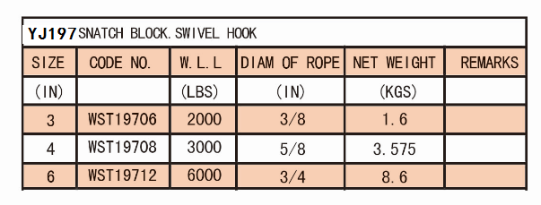 » YJ197 SNATCH BLOCK SWIVEL HOOK