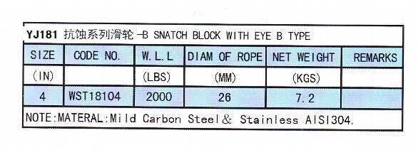 YJ181 SNATCH BLOCK WITH EYE B TYPE