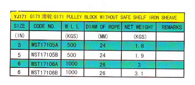 YJ171 G171 PULLEY BLOCK WITHOUT SAFE SHELF