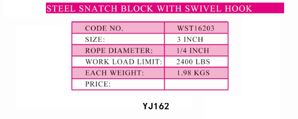 » YJ162 STEEL SNATCH BLOCK WITH SWIVEL HOOK