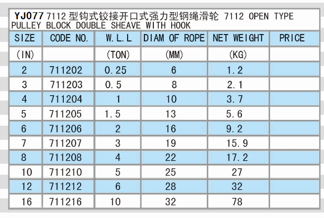 » YJ077 7112 OPEN TYPE PULLEY BLOCK DOUBLE SHEAVE WITH HOOK